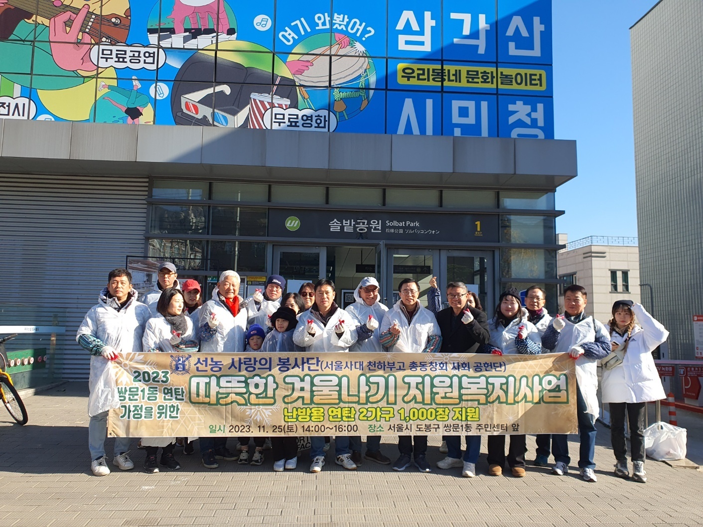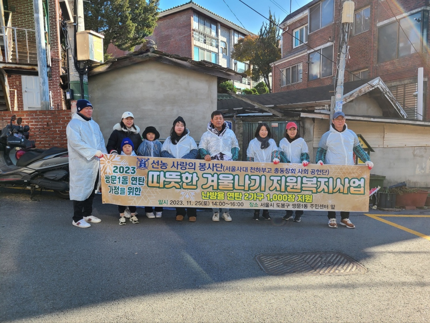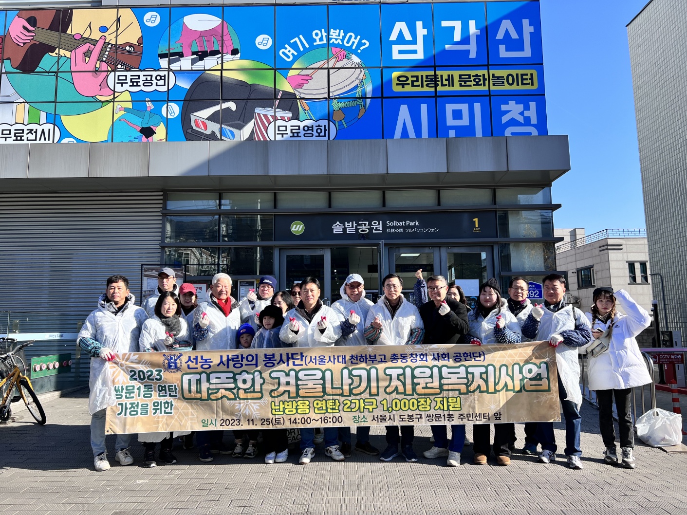 서울사대부고 총동창회(회장 이진형)에 선농 사랑의 봉사단(단장 노용오)은 지난 11.24일 토요일 도봉구 쌍문1동에서 봉사단원 20명이 참석해준 가운데 사랑의연탄 나눔 행사를 진행했다고 알려왔다.