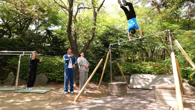 고수가 선보인 풍차 돌리기 묘기는 장성규를 비롯한 산스장 방문객들을 놀라게 하며, 이 장면은 방송을 통해 공개될 예정입니다.